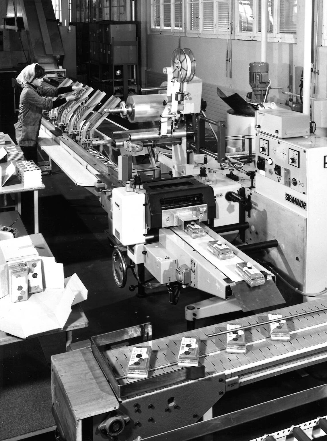 Heinrich Weibel establishes the Bernrain chocolate factory and delights his customers with confectionery products, chocolate-covered marsh-mallows, “Hüppen” (filled wafer rolls) and “Branches” (chocolate twigs).