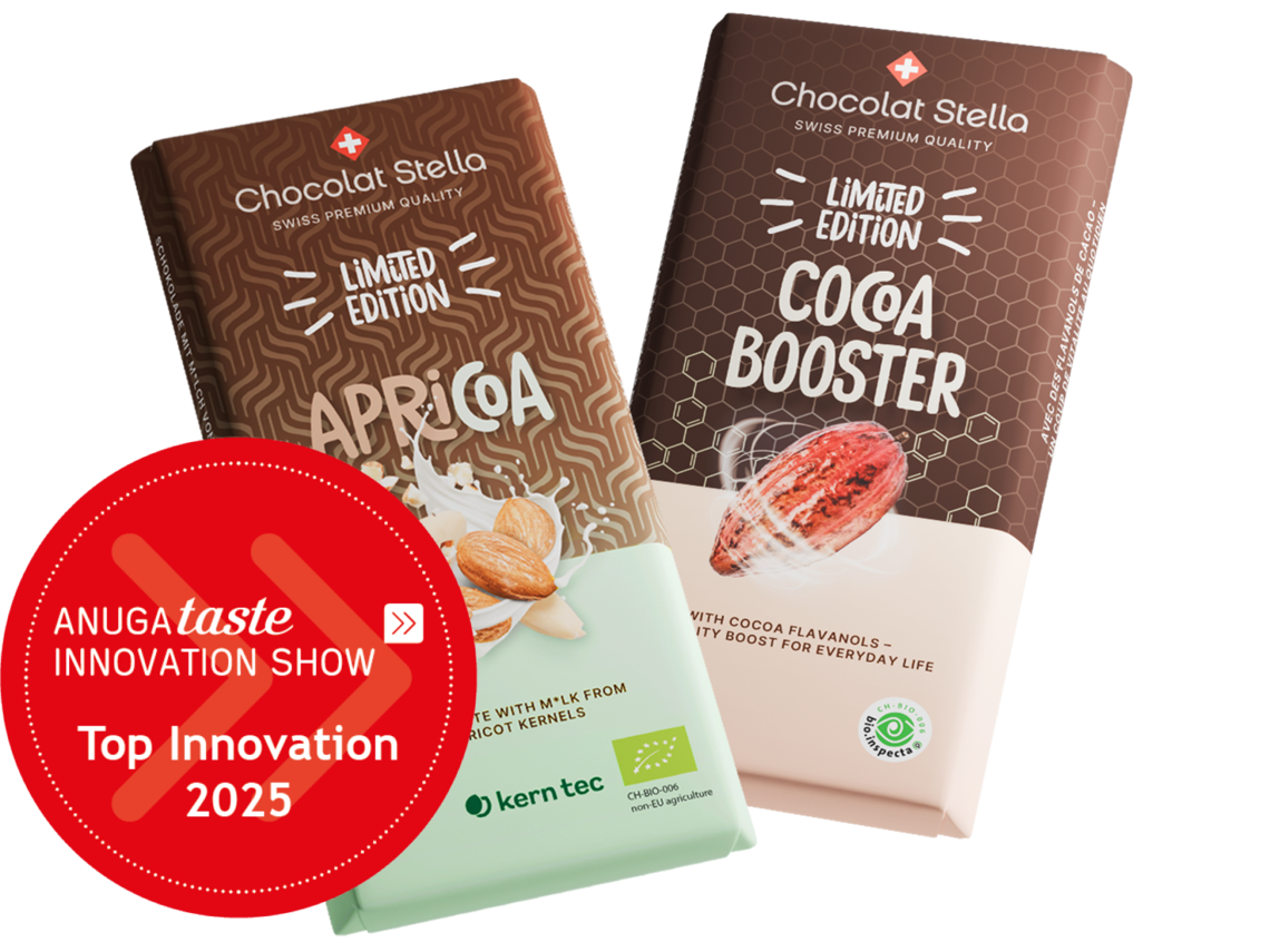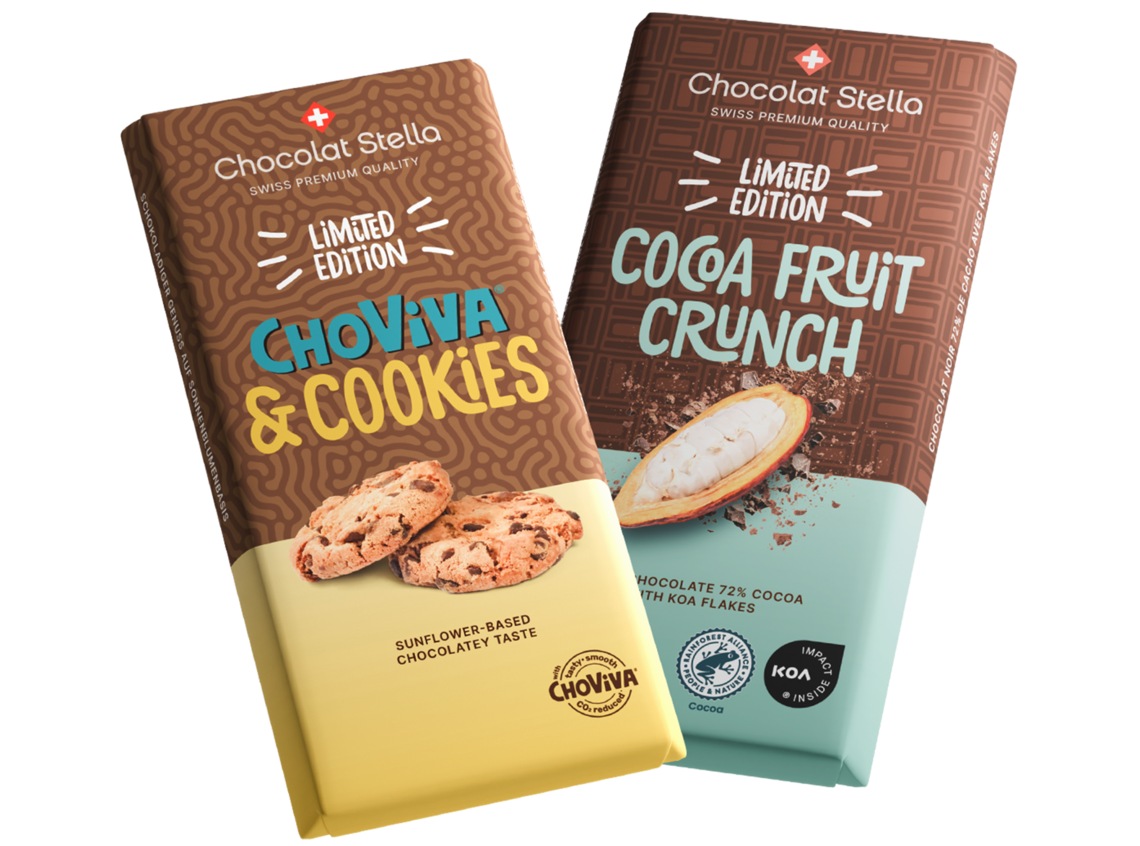 Stella presents the New Quality & Diversity Linie with two Limited Edtions. “ChoViva & Cookies” – A First on the Swiss Market, a cocoa-free chocolate alternative based on sunflower seeds. “Cocoa Fruit Crunch” - dark chocolate enhanced with dried cocoa fruit flakes..