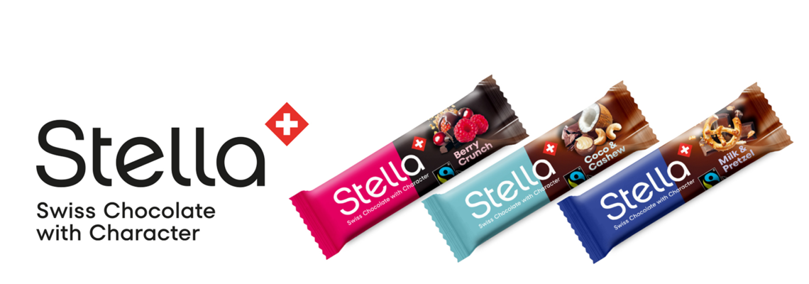 Stella Bernrain reinvented itself: with the relaunch of the STELLA brand and the claim “Swiss Chocolate with Character,” the focus is on innovation, quality, and sustainability. The launch is accompanied by three new snack bars, all certified organic and Fairtrade, and packaged in sustainable paper.